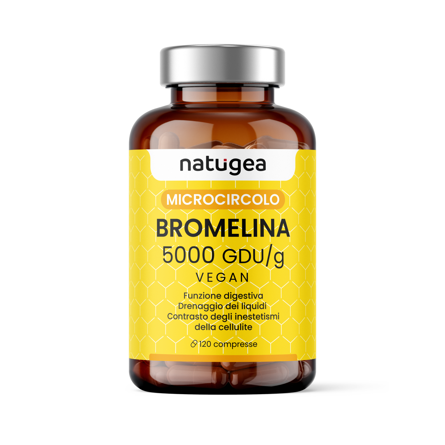 - Con Bromelina 5000 GDU/g reali. Bromelina forte drenante, assumendo la dose massima di 4 compresse al giorno, è possibile integrare 1000 mg di bromelina con carica enzimatica di 5000 gdu per grammo. La bromelina aiuta a contrastare la cellulite, riducendo il ristagno dei liquidi e migliorando la circolazione. Inoltre, stimola il sistema linfatico, favorendo il drenaggio dei liquidi e delle tossine accumulate nei tessuti.