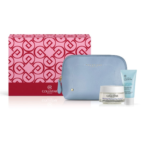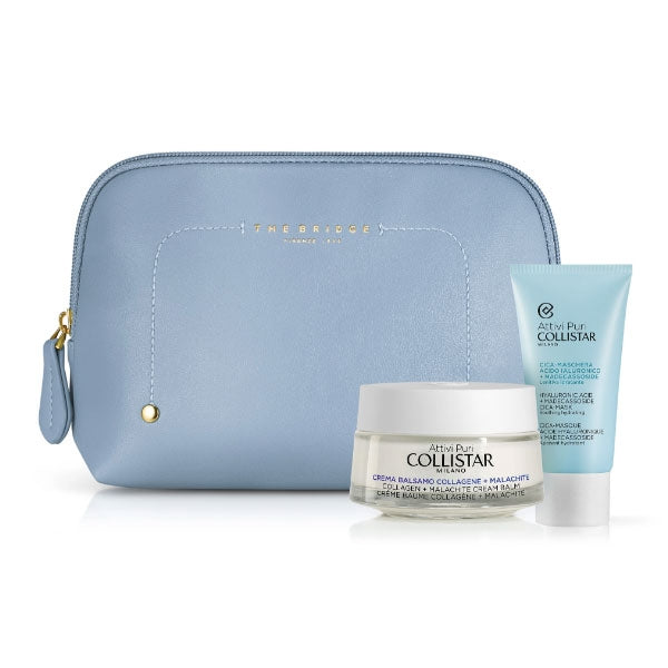 Cofanetto regalo Collistar in collaborazione con The Bridge, sintesi di eleganza italiana e cura della pelle. Il set include una crema balsamo al collagene con malachite, trattamento antietà innovativo che nutre, rassoda e ridefinisce i contorni del viso. Abbinato a una cica-maschera all'acido ialuronico, che nutre e lenisce in profondità. Questo kit regalo Collistar offre un'esperienza di bellezza completa, proteggendo la pelle dall'invecchiamento e donando luminosità e tonicità.