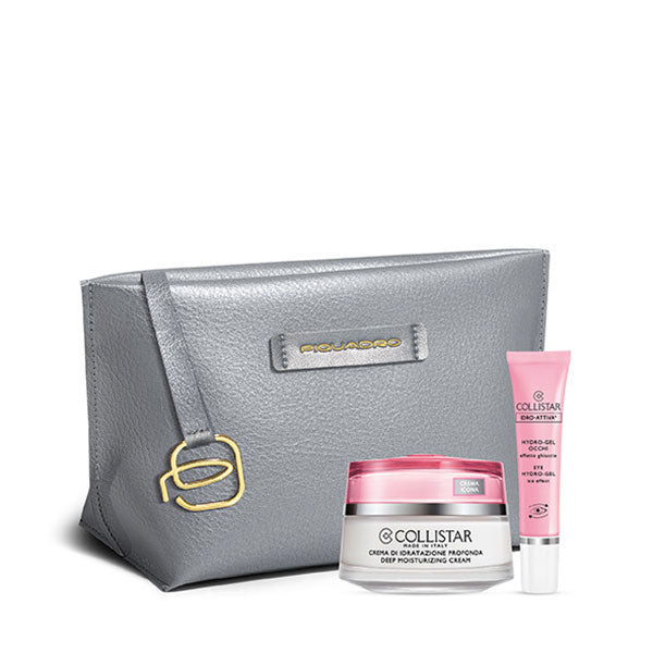COLLISTAR COFANETTO PIQUADRO CREMA IDRATAZION PROF 50 + HYDR 8,5 : Un omaggio all’eccellenza del Made in Italy di cui Collistar, da oltre 30 anni, è ambasciatrice nel mondo. Le esclusive Beauty-Bag firmate Piquadro sono realizzate con materiali innovativi e colori fashion, uniti a un design contemporaneo e a dettagli preziosi, che le rendono un accessorio unico.