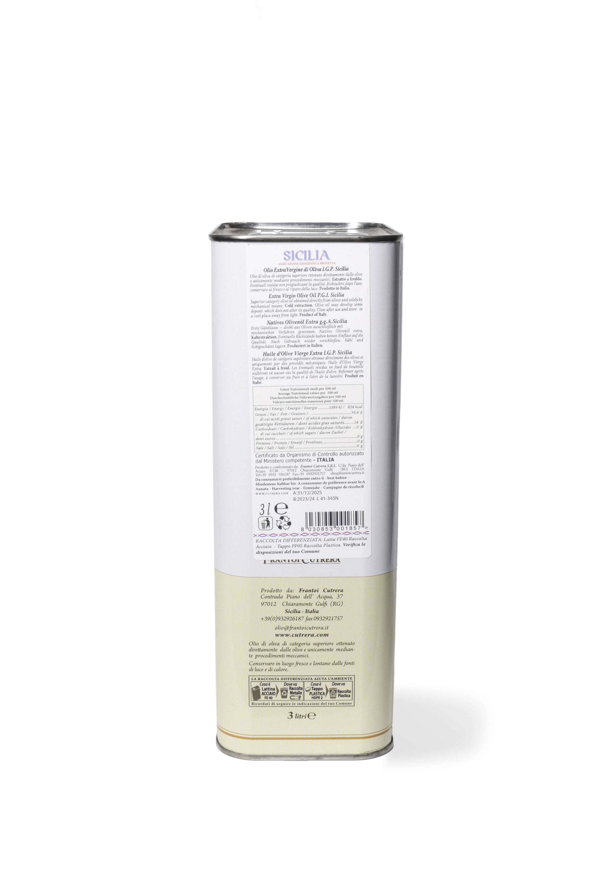 Cutrera IGP Sicilia - Olio Extravergine di Oliva Siciliano - Latta