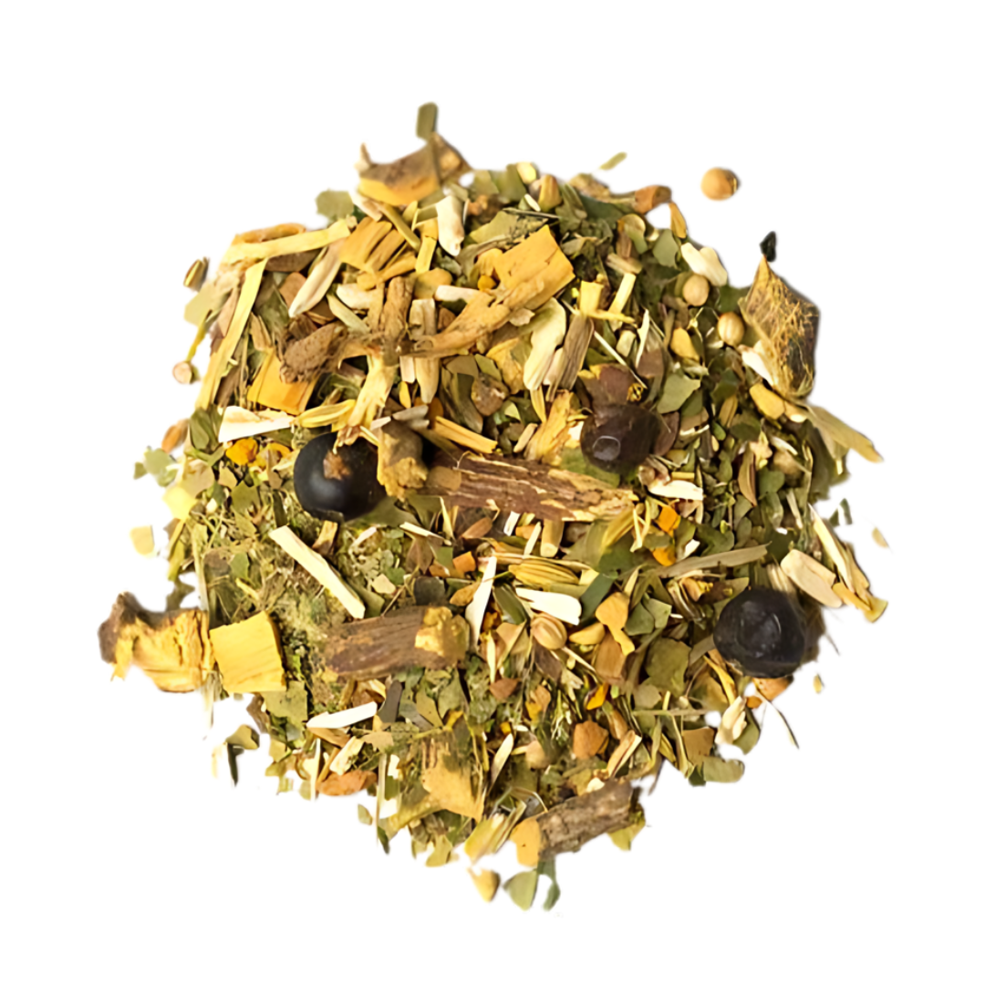 Ingredienti: Yerba Mate (50%), Salvia, Liquirizia, Cannella, Coriandolo, Ginepro, Tarassaco, Curcuma, Zenzero, Finocchio, Anice Grano e Curcuma.