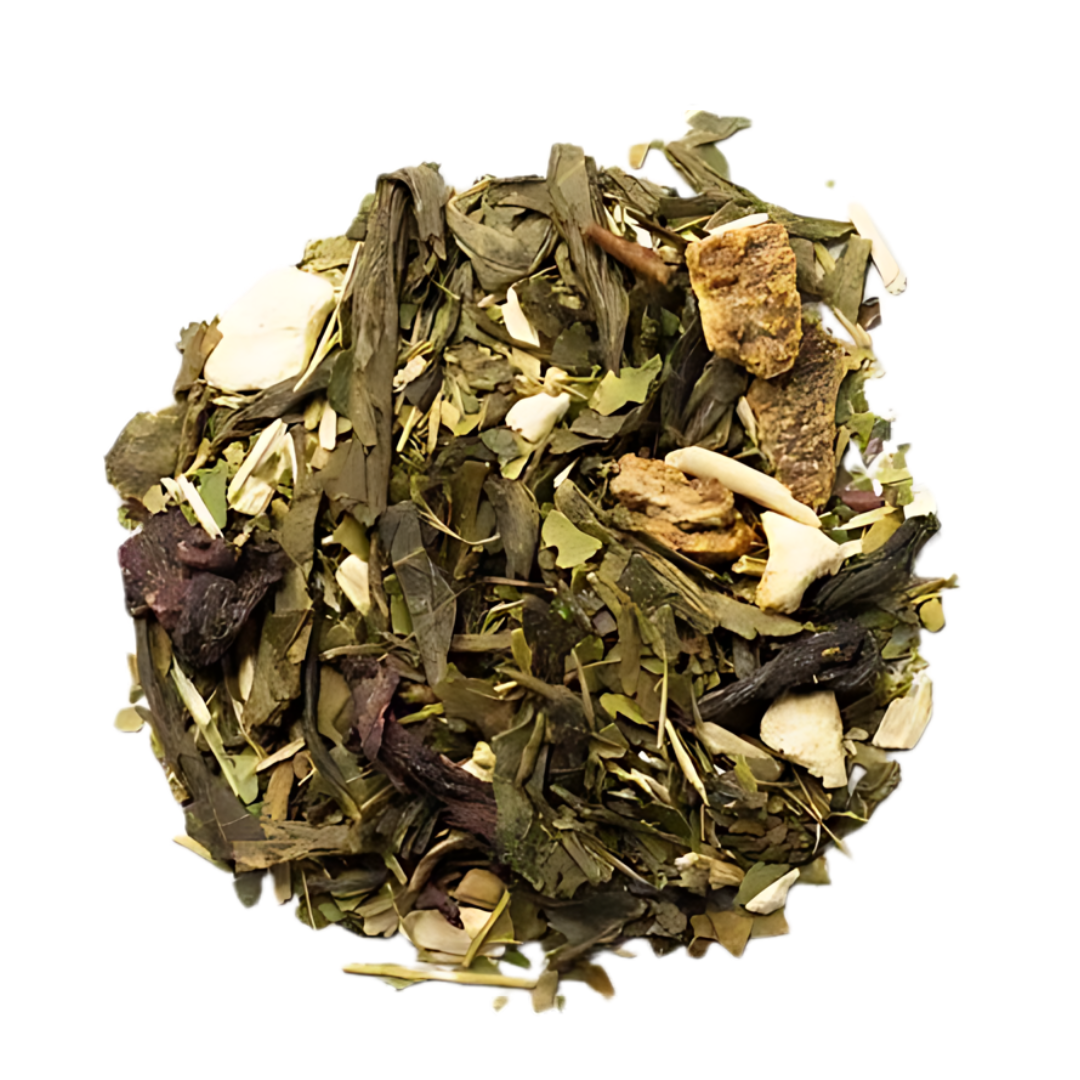 Ingredienti: Yerba Mate (50%), Tè verde Sencha, Ibisco, Scorza Arancia, Guaranà e Mirtillo.