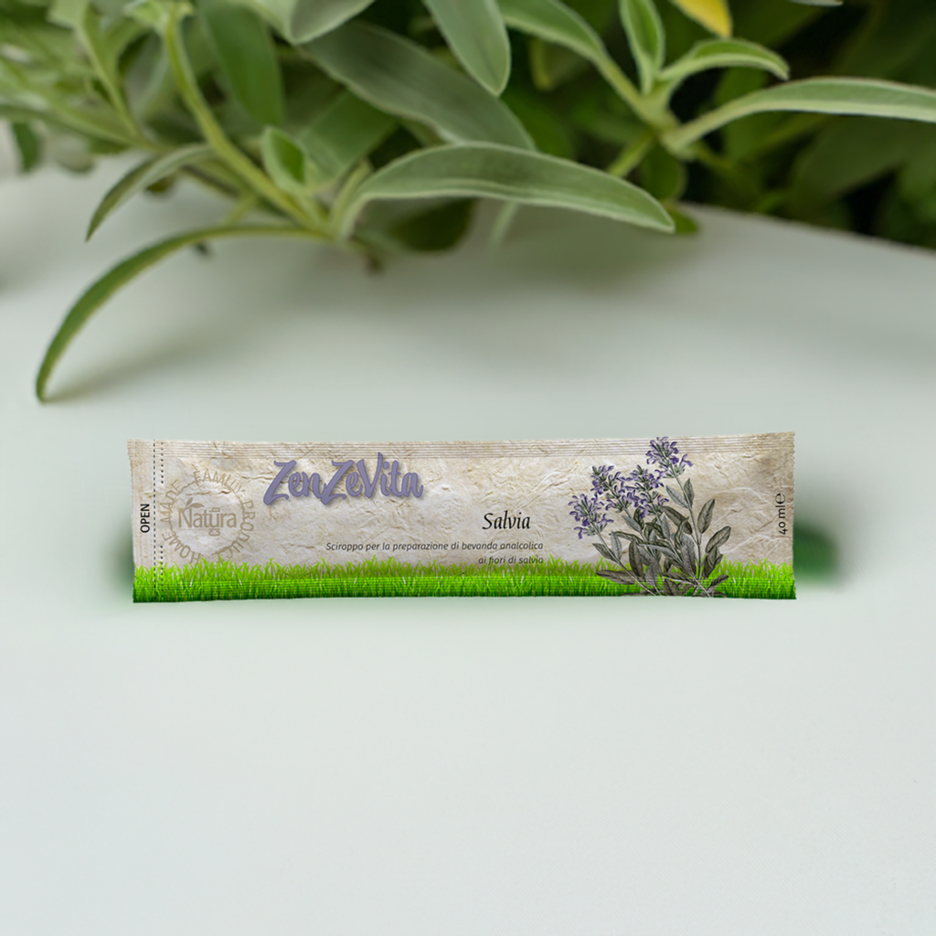 Scheda technica del prodotto: sciroppo per la preparazione di bevanda analcolica. Ingredienti: acqua, zucchero, estratto di foglie e fiori di salvia (5%), acido citrico, Pastorizzato.